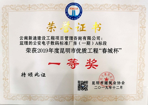 2019年度昆明市優(yōu)質工程“春城杯”一等獎(云安電子廠房)