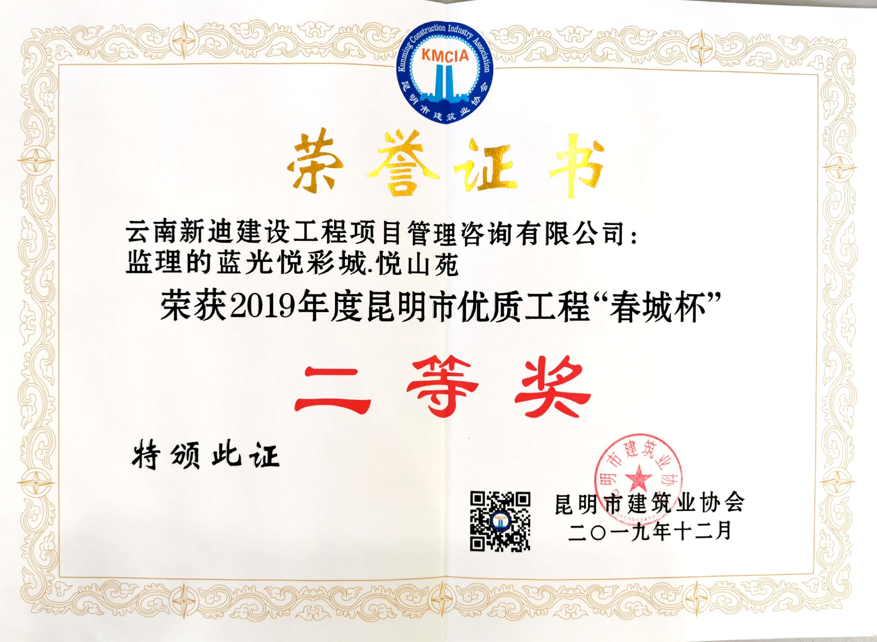 2019年度昆明市優(yōu)質工程“春城杯”二等獎(藍光悅彩城)