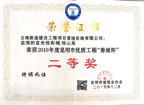 2019年度昆明市優(yōu)質(zhì)工程“春城杯”二等獎(jiǎng)(藍(lán)光悅彩城)